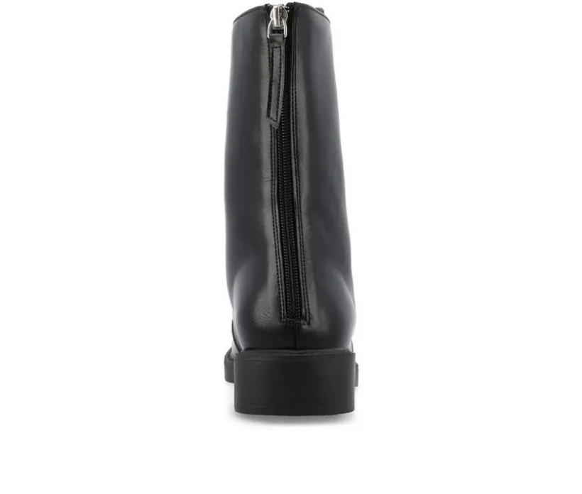 Introducing Nikks by Journee Collection, the combat bootie that offers both style and comfort. With its cool and casual design, Nikks features vegan leather construction, a mix-and-matchable style, a block heel, and lace-up detail with inside zipper and almond-toe that make it a perfect addition to any outfit. With a 4 mm Tru Comfort Foam™ insole, Nikks by Journee Collection ensures all-day comfort, making it the ultimate choice for anyone who wants a stylish and practical combat bootie that can keep up with their busy lifestyle.