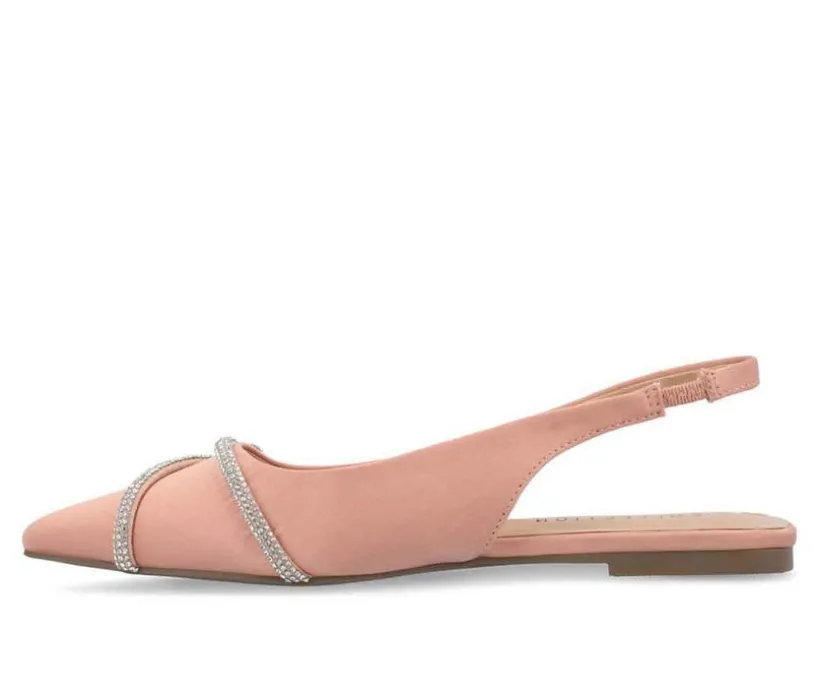 The Rebbel flats from Journee Collection will give you that bold look while boosting your confidence along the way. With their chic satin material, sling back strap, rhinestone knotted detail, and pointed toe, they will give you the perfect combination of style to take you anywhere. As a bonus, their padded footbed and slip-on closure will leave your feet comfortable while you are out and about.