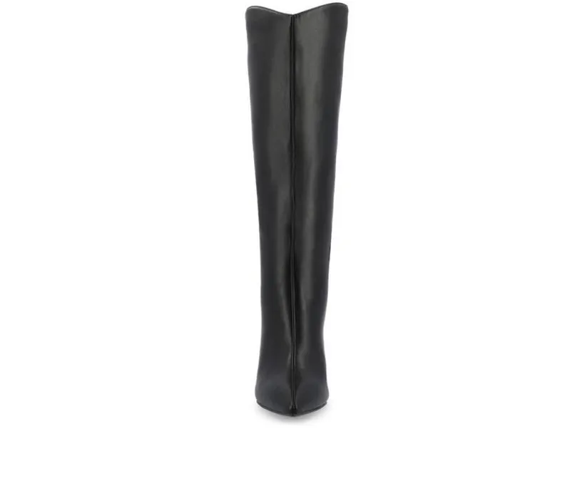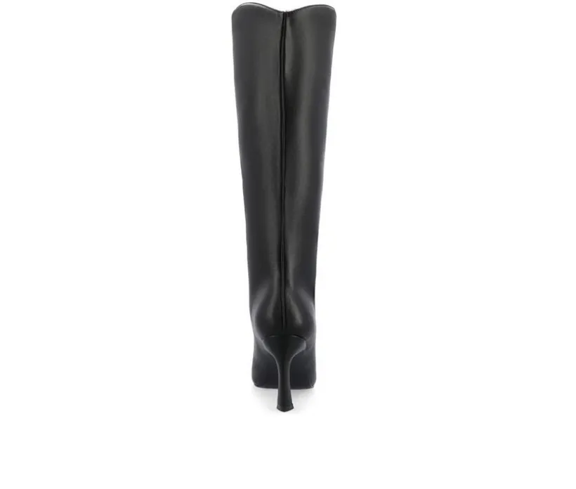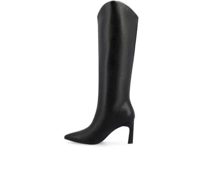 Introducing the Rehela boot by Journee Collection, the perfect blend of elegance and comfort. Crafted with vegan leather, these boots feature a stylish stiletto heel and pointed-toe design, adding sophistication to any outfit. The 4 mm Tru Comfort Foam™ insole ensures a cushioned step, while the pull-on style and center seam detail offer convenience and a sleek look. Step out in confidence with the Rehela boot.
