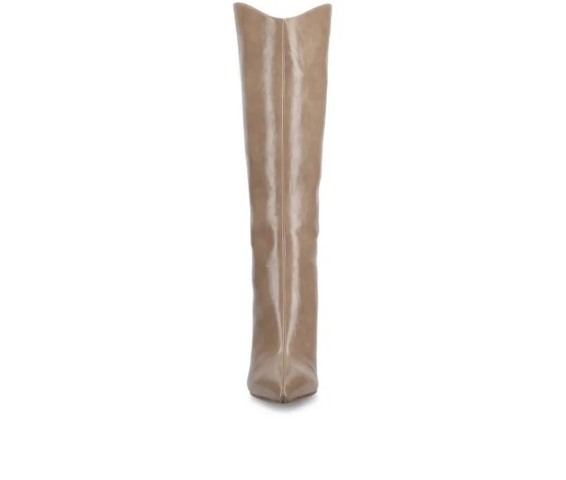 Introducing the Rehela boot by Journee Collection, the perfect blend of elegance and comfort. Crafted with vegan leather, these boots feature a stylish stiletto heel and pointed-toe design, adding sophistication to any outfit. The 4 mm Tru Comfort Foam™ insole ensures a cushioned step, while the pull-on style and center seam detail offer convenience and a sleek look. Step out in confidence with the Rehela boot.