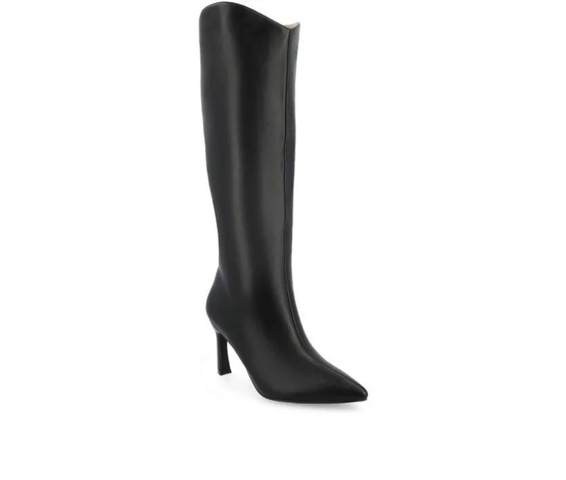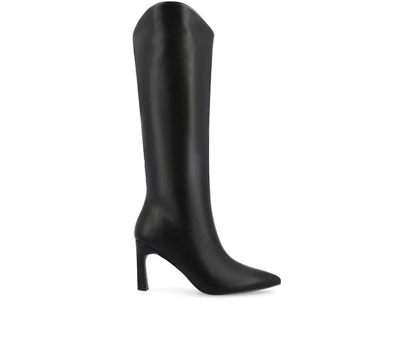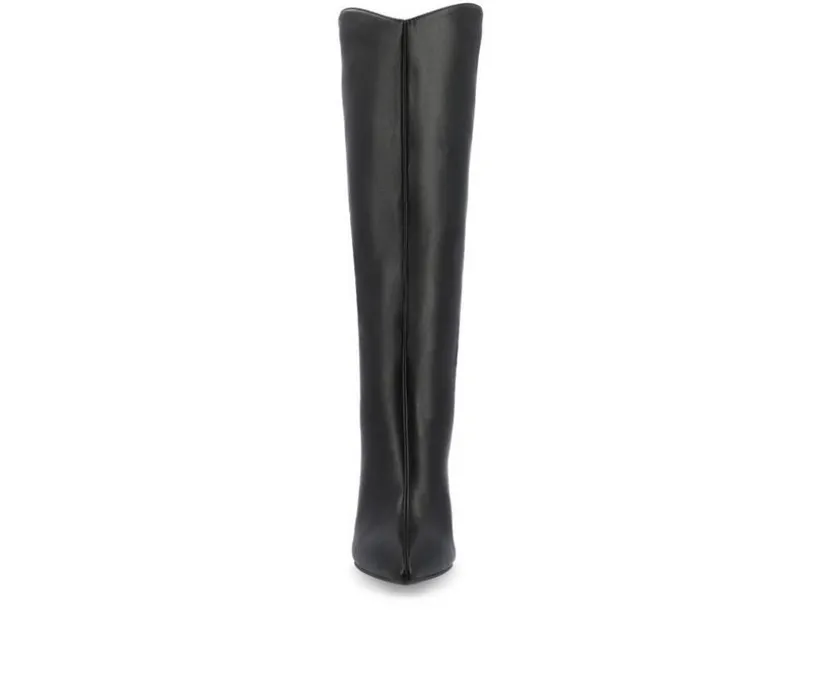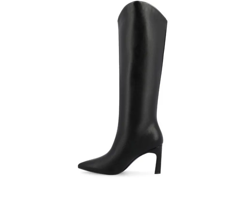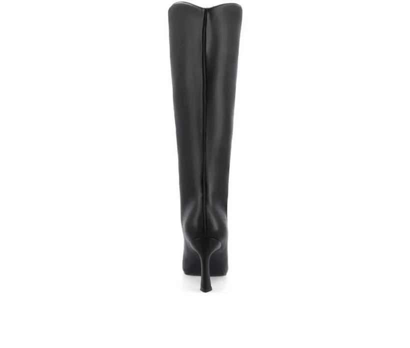 Introducing the Rehela boot by Journee Collection, the perfect blend of elegance and comfort. Made with a wide-width footbed and wide-calf, they are crafted with vegan leather, and these boots feature a stylish stiletto heel and pointed-toe design, adding sophistication to any outfit. The 4 mm Tru Comfort Foam™ insole ensures a cushioned step, while the pull-on style and center seam detail offer convenience and a sleek look. Step out in confidence with the Rehela boot, a must-have for fall.