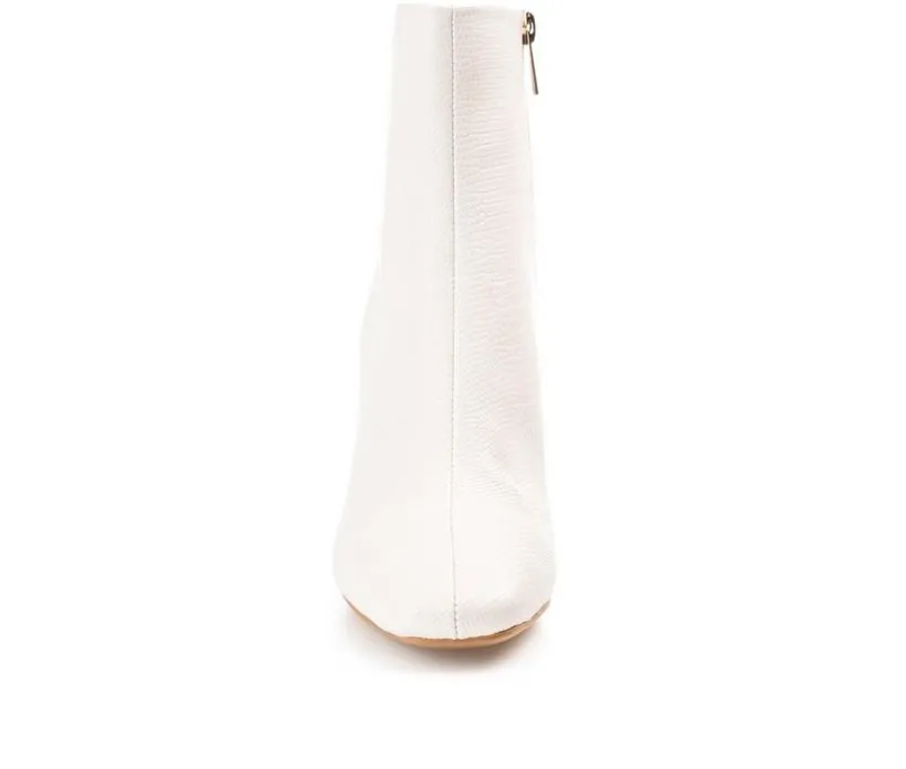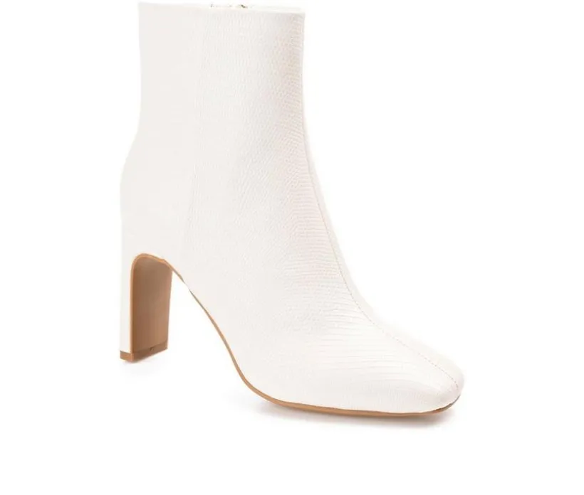 Super cute and super versatile: the Sarla by Journee Collection. These stylish square-toe booties feature lizard textured vegan leather uppers detailed with a retro center seam. Featuring a 4 mm Tru Comfort Foam™ insole that makes them oh-so comfortable to walk in, and an inside zipper makes them easy to slip on.