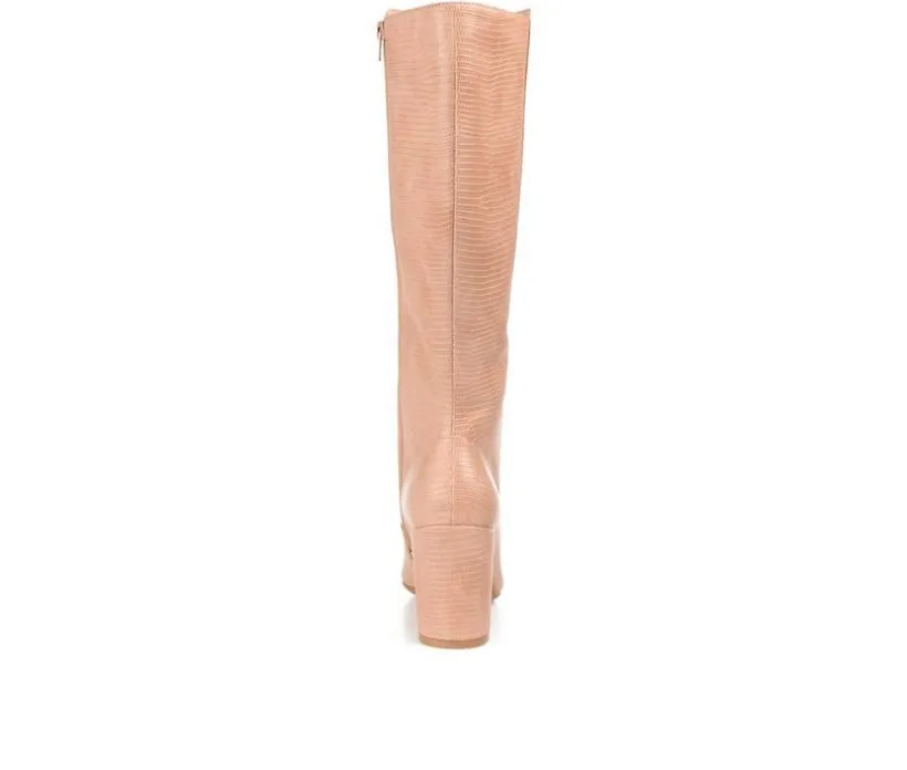 The search for a comfortable and stylish boot ends here. The Tavia boots by Journee Collection feature lizard textured vegan leather uppers detailed with an inside zipper and a wide-calf. A 4 mm Tru Comfort Foam™ footbed makes them comfortable to stand in, and a block heel adds the perfect amount of height.