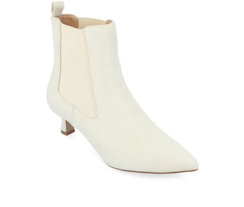 So easy and stylish, the Tenlee bootie by Journee is sure to become a favorite go-to. This pointed-toe bootie is effortlessly stylish thanks to its chelsea stretch details and kitten heel. Soft vegan leather shapes the look and a 4 mm Tru Comfort Foam™ footbed offers long-lasting support. At Journee, our booties will give you that comfortable yet stylish look, perfect for when you’re in the office all the way to a fun night out with the girls.