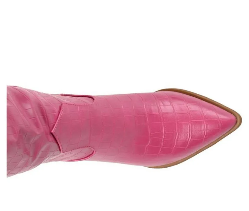Are you a city or a country lover? Channel both with the Therese by Journee Collection! This pointed-toe boot with a block heel is the perfect way to finish your fall outfits. This look borrowed from the wild west features croc textured vegan leather and features a 4 mm Tru Comfort Foam™ insole for a comfortable fit.