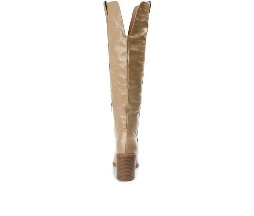 Do you prefer the city or the country? Well, why not embrace both sides with the Therese boot by Journee Collection! A stacked block heel and croc textured vegan leather detail this knee-high boot for a sassy look. This rodeo-inspired design features a wide-calf features a 4 mm Tru Comfort Foam™ insole for supportive and comfortable wear.