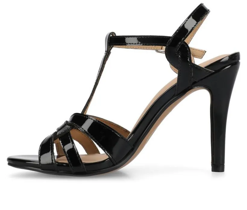 The Valry Stiletto Heel from Journee exudes elegance with its buckle ankle strap and chic woven T-strap detail, offering a sophisticated look. Crafted from smooth faux leather, it features a flattering open-toe design and a 3 3/4-inch heel for added height. A cushioned insole provides comfort, making this stiletto perfect for both style and all-day wear.