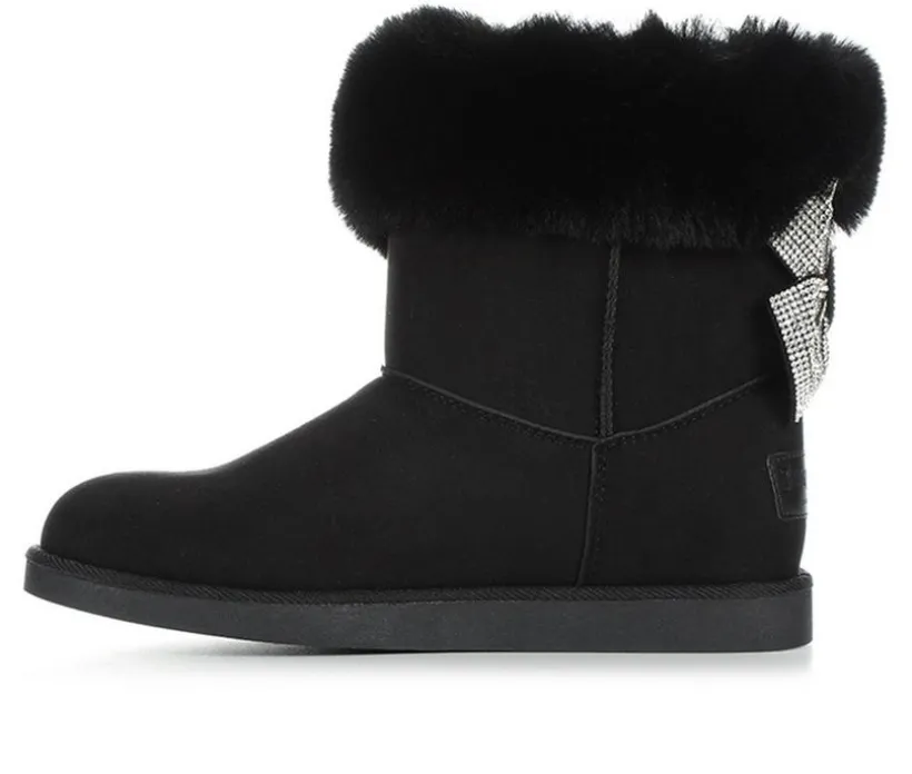 Get ready to sparkle in the Women’s Juicy Krazey Kute Winter Boots! These chic boots bring winter glam with a rhinestoned bow on the back and a plush faux fur trim for cozy warmth. Finished with Juicy Couture branding and a durable outsole, they’ll keep you stylish and comfy on every cold-weather adventure!