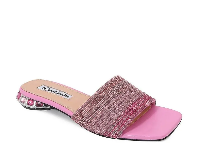 Add a pop of texture and sparkle to your warm-weather wardrobe with these standout slip-on sandals. The wide, woven upper shimmers with glittery detail, bringing playful glam to your look while keeping things breezy. A sculpted low heel wrapped in rhinestones adds eye-catching charm with every step. With an open square toe and easy-on design, these sandals strike the perfect balance of fashion and convenience for sunny days and stylish nights.