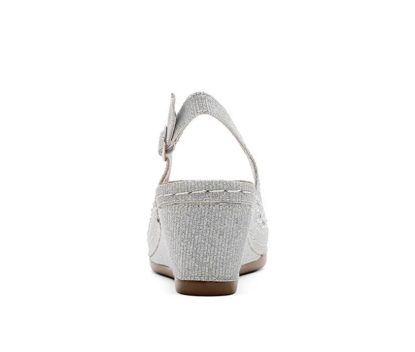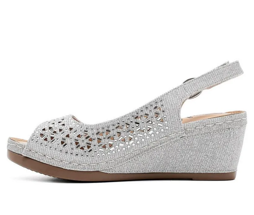 Shine through every step in these eye-catching wedge sandals designed for comfort and glamor. The upper sparkles with allover rhinestones, while an open toe and slingback strap keep things breathable and secure. A wedge heel adds a flattering boost without sacrificing stability, making them perfect for everything from casual celebrations to formal nights out. With an adjustable strap and cushioned insole, these sandals offer a personalized fit and easy wear that lasts all evening.