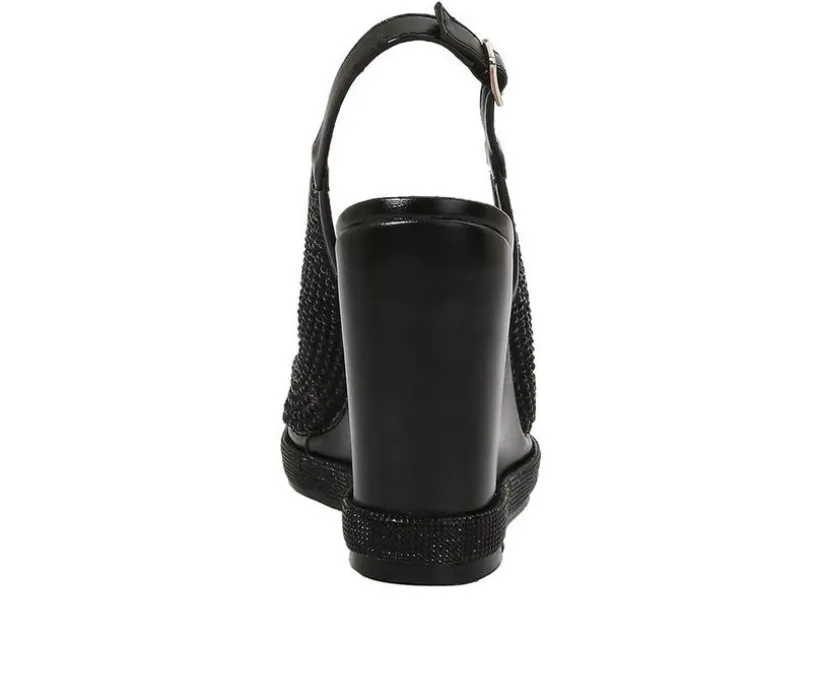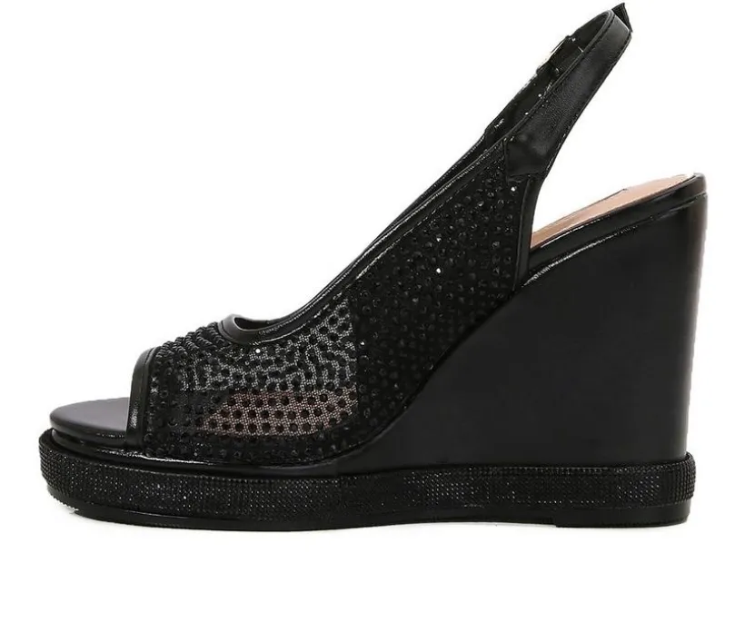 Glittering style meets height-boosting comfort in this statement wedge sandal perfect for dressing up your summer events. Designed with a shimmering mesh-textile upper and a peep toe front, it delivers breathable glamor with every step. The slingback strap with adjustable buckle keeps the fit secure, while the jeweled platform and tall wedge heel add drama without compromising balance. It’s the perfect pick for weddings, parties, and polished nights out.