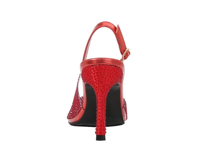 Elegant and eye-catching, these heels bring a sophisticated sparkle to any occasion. Featuring a man-made upper with glittering accents, they’re designed with a pointed toe silhouette and slingback strap for a timeless finish. The high stiletto heel adds graceful height, while the secure buckle closure ensures a comfortable fit from day to night.