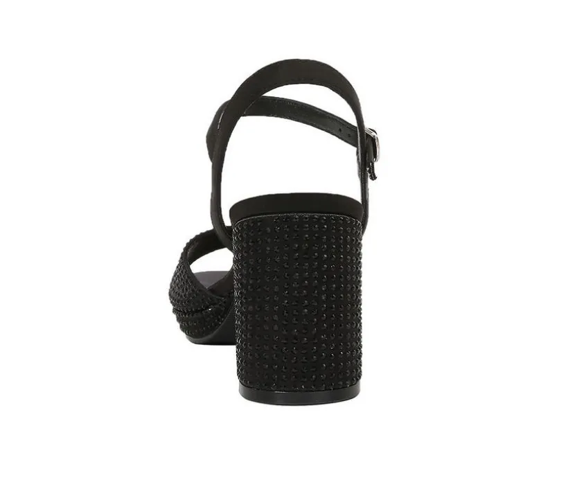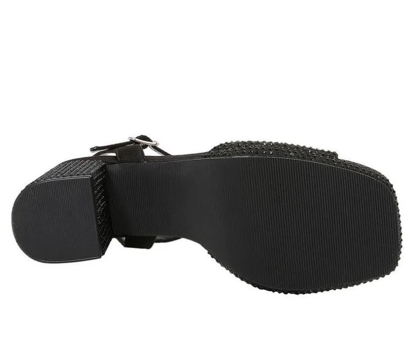 Bold sparkle meets sky-high glamour in this platform sandal designed to stand out at any celebration. Covered in shimmering accents from heel to toe, it features a chunky block heel and slight platform for height without sacrificing comfort. The secure ankle strap and open-toe silhouette combine fashion and function, making it easy to dance the night away. Whether it’s a formal affair or a special night out, this sandal adds just the right touch of drama.