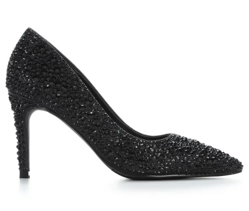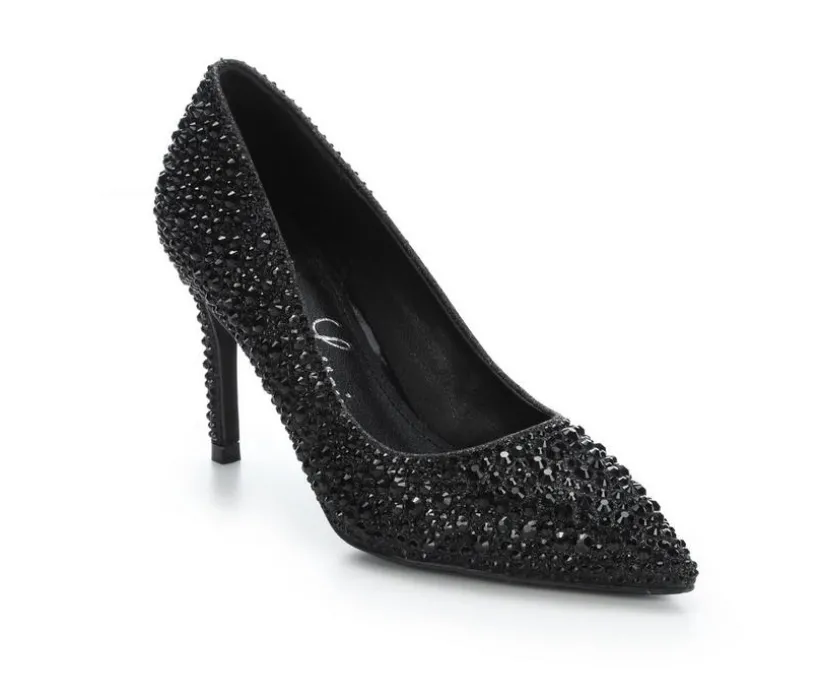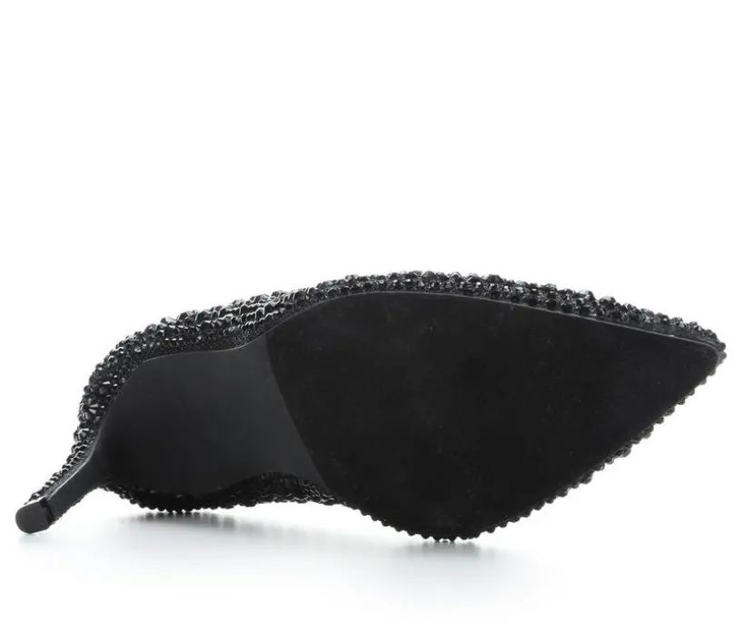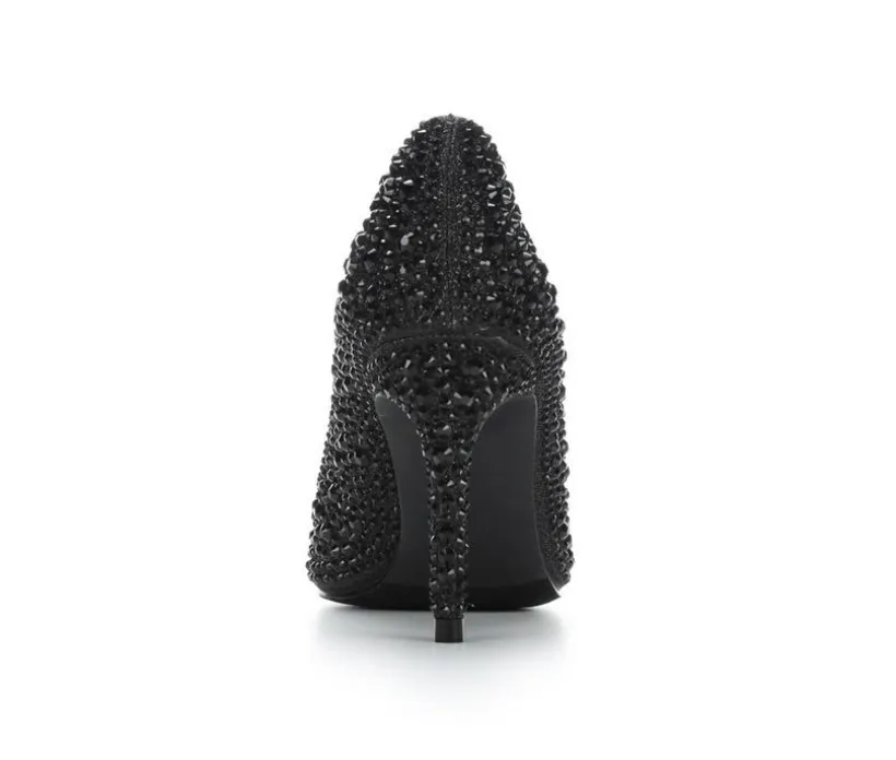 These dress heels bring dazzling sparkle and a sleek silhouette together for a standout finish that elevates any special-occasion look. The slip-on pump design keeps things simple and elegant, while the pointed toe adds a refined, elongated shape. A tall stiletto heel gives graceful height, and the smooth interior lining helps keep the fit comfortable throughout the event. Covered in shimmering embellishments, this style delivers eye-catching glamour with every step.