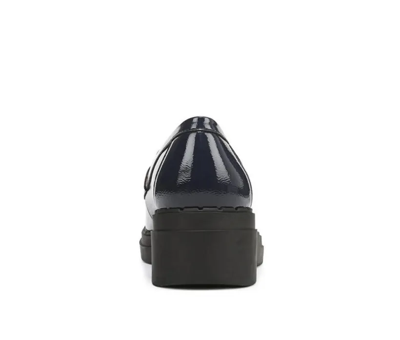 This sleek wedge loafer combines timeless style with elevated comfort, offering a polished look that transitions effortlessly from work to weekend. The glossy synthetic upper features classic loafer styling with a wide vamp strap, while the cushioned insole provides supportive wear throughout the day. A low wedge heel delivers subtle lift without compromising stability, and the rounded toe adds to its versatile appeal. Whether you’re dressing up or keeping things casual, this loafer adds a refined finish.