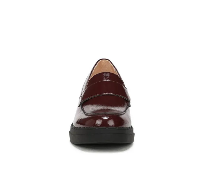 This sleek wedge loafer combines timeless style with elevated comfort, offering a polished look that transitions effortlessly from work to weekend. The glossy synthetic upper features classic loafer styling with a wide vamp strap, while the cushioned insole provides supportive wear throughout the day. A low wedge heel delivers subtle lift without compromising stability, and the rounded toe adds to its versatile appeal. Whether you’re dressing up or keeping things casual, this loafer adds a refined finish.