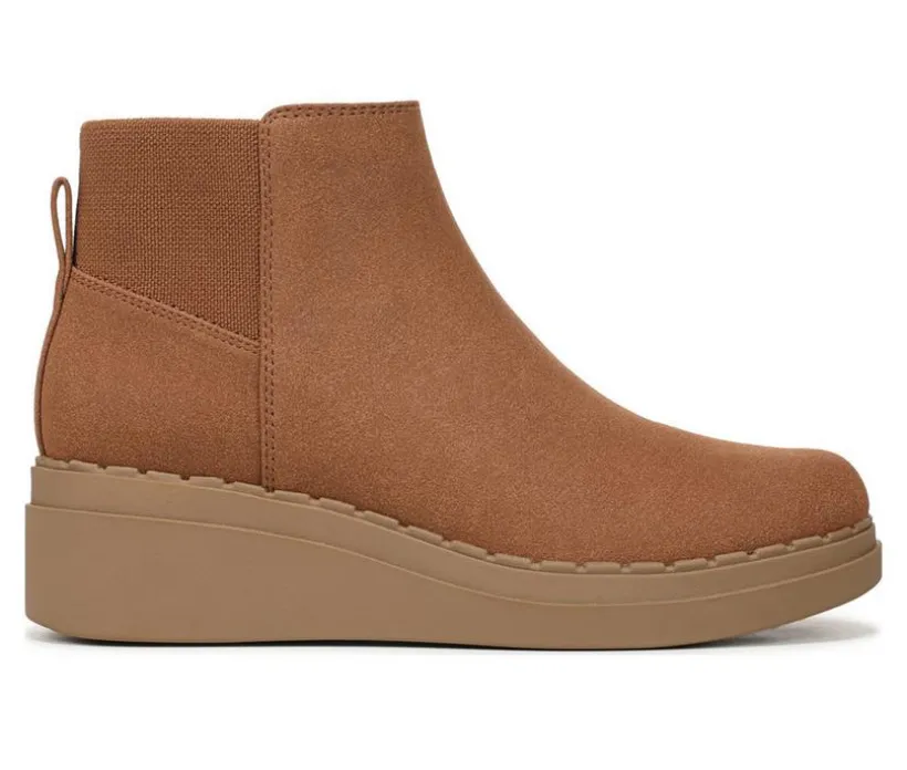 This wedge ankle boot blends a sleek silhouette with supportive comfort, making it a smart pick for cooler days and everyday wear. The synthetic upper features a clean, modern profile with dual side stretch panels for easy slip-on convenience. A cushioned insole softens each step, while the low wedge heel provides subtle lift and stable support. Finished with a pull tab at the heel and a flexible outsole, this boot delivers both comfort and versatility in one stylish package.