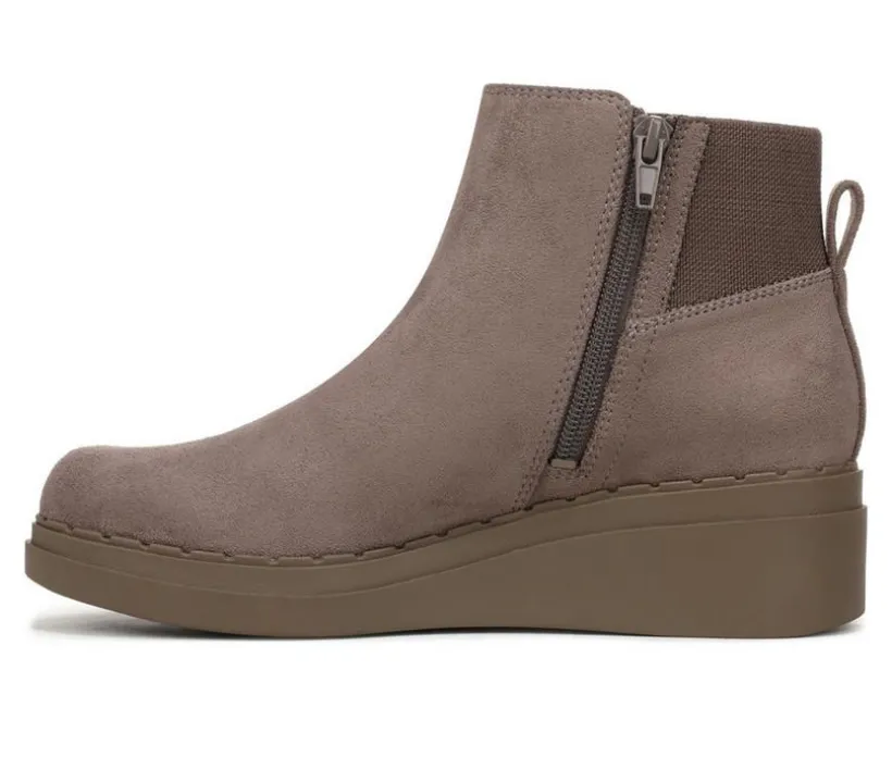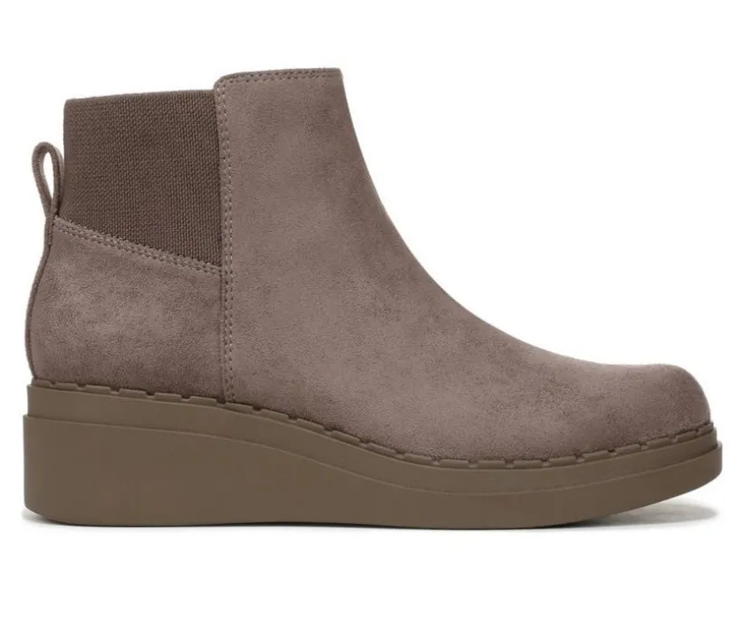 This wedge ankle boot blends a sleek silhouette with supportive comfort, making it a smart pick for cooler days and everyday wear. The synthetic upper features a clean, modern profile with dual side stretch panels for easy slip-on convenience. A cushioned insole softens each step, while the low wedge heel provides subtle lift and stable support. Finished with a pull tab at the heel and a flexible outsole, this boot delivers both comfort and versatility in one stylish package.