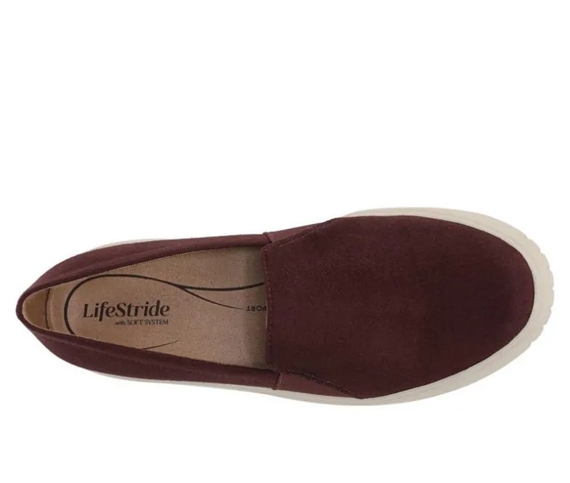 Step into sleek comfort with these modern slip-on sneakers from LifeStride. Designed with a smooth synthetic upper and a sporty platform sole, these shoes blend casual style with everyday wearability. The stretch panels allow for easy on and off, while the cushioned insole ensures soft support with every step. Finished with a flexible, grippy outsole, these sneakers are perfect for workdays, errands, or weekend relaxation.