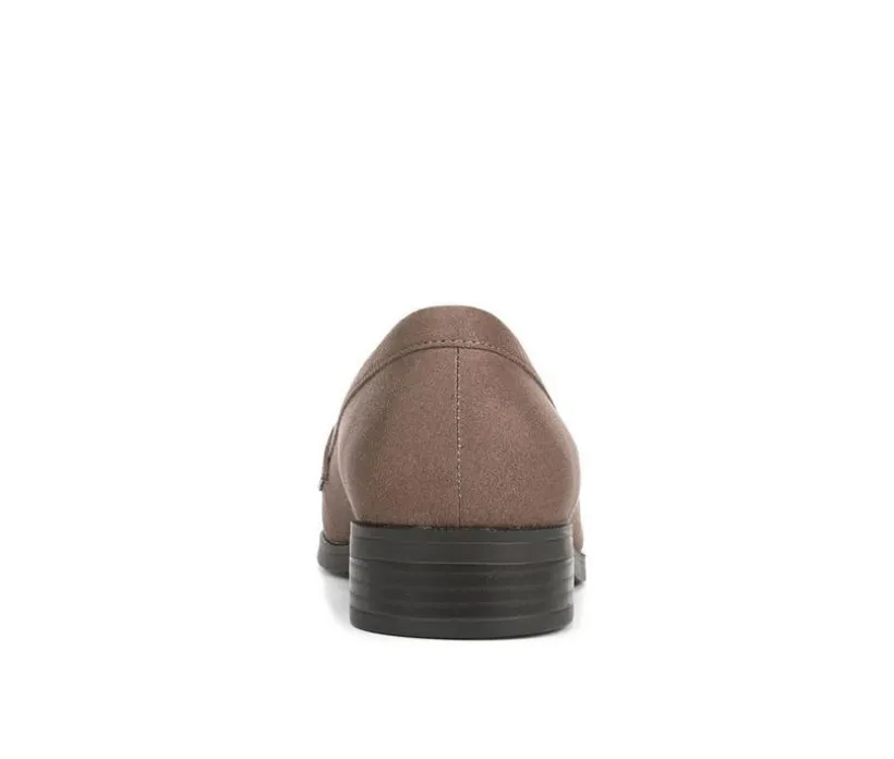 Classic moc loafers with modern flair. These womens slip on shoes always look chic. Faux leather or patent upper with a round toe, slip-on fit, and strap detail. Toe box, heel counter, and linings partially crafted with recycled materials. Soft System® comfort package provides all-day support, flex, and cushioning. Active Arch® contoured insole with extra arch support and cushioning. Traction sole provides you with extra stability. Just Right Height 1.125 inch block heel.