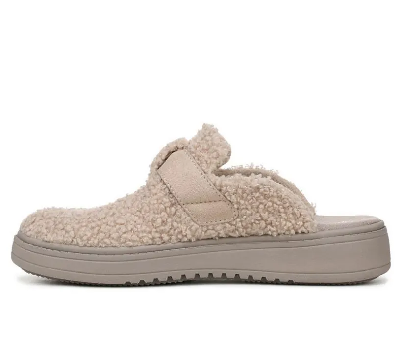 A cozy mule with casual charm, this style features a stretch fabric and faux shearling upper for a warm look. The round toe and easy slip-on fit are finished with a decorative strap and buckle detail. A low-profile sole makes it perfect for lounging or casual days out.