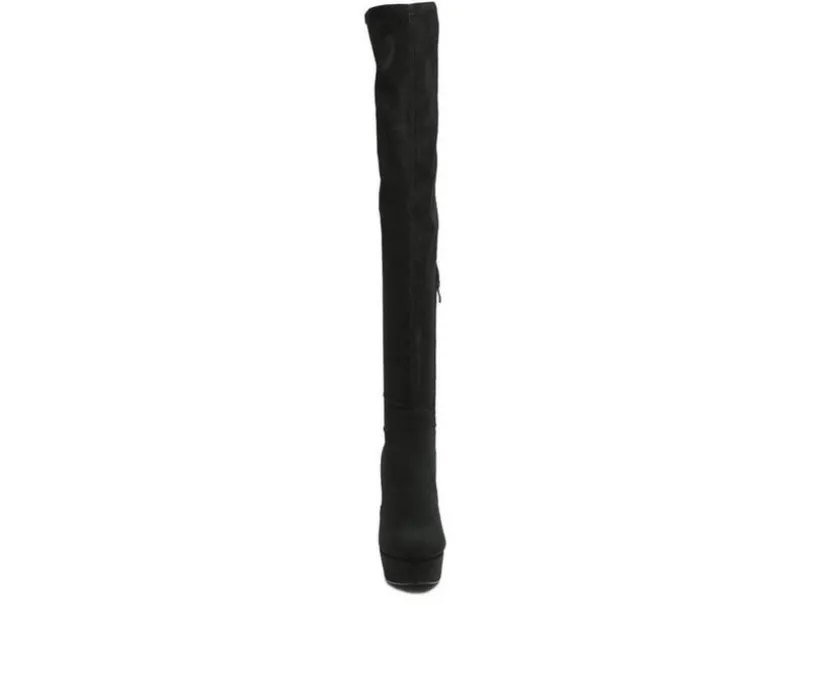 Add some drama even to the basic winter greys with chunky block heeled, over the knee warm suede boots. Crafted with precision – sets well along the foot curve.