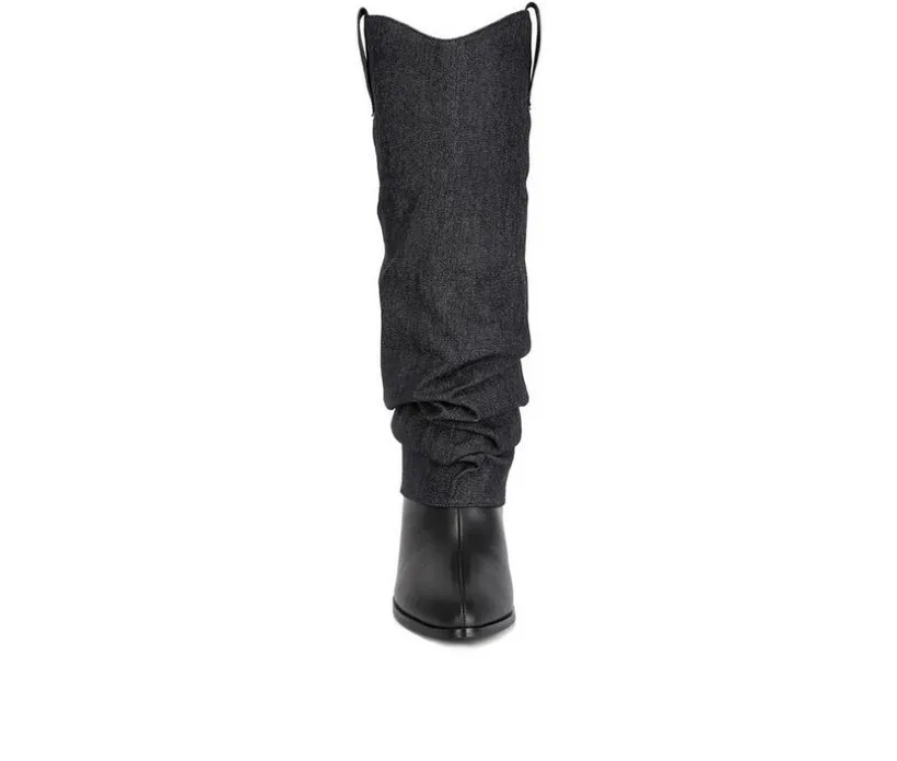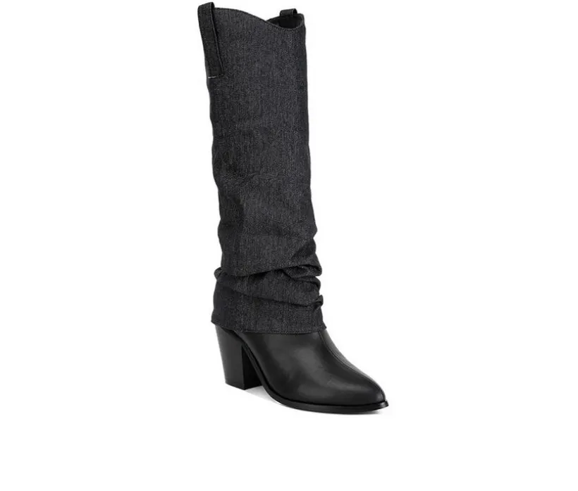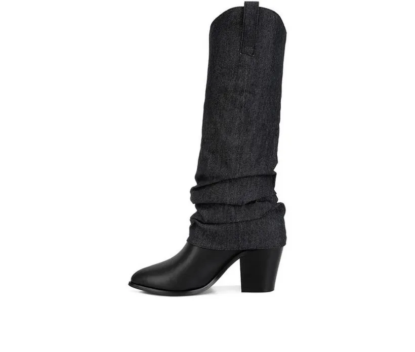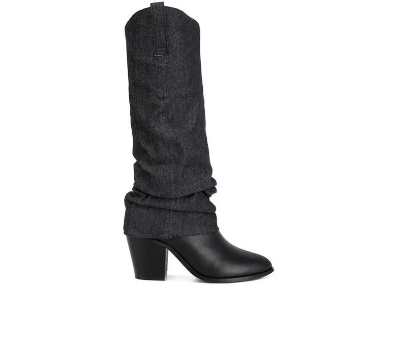Stylish and unique, every shoe collection needs an avant garde pair of boots. Pair these unique denim sleeve on these cowboy boots with your brunch outfits or midi skirts to work. the low block heel makes them super comfortable to walk in