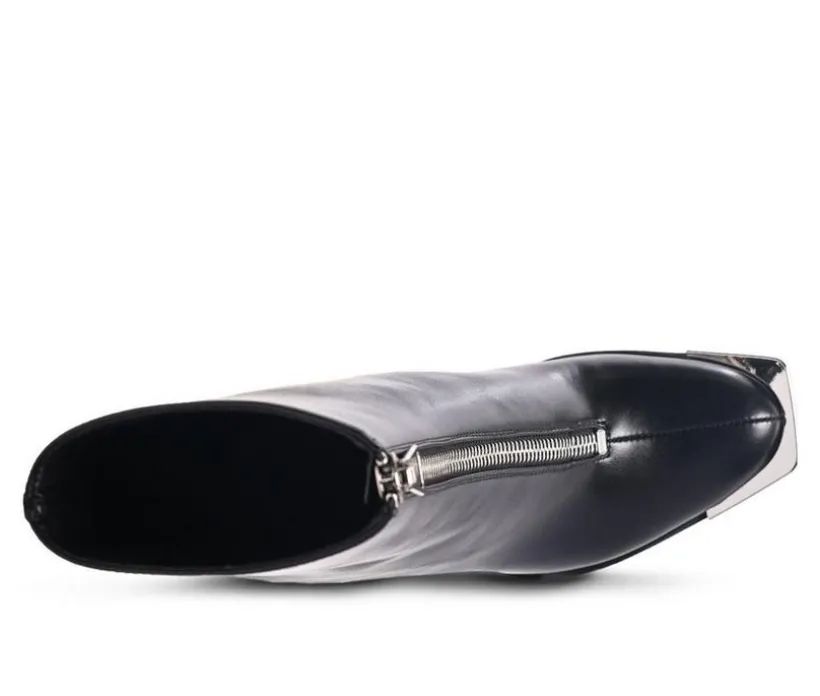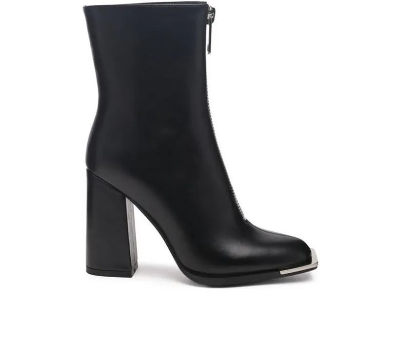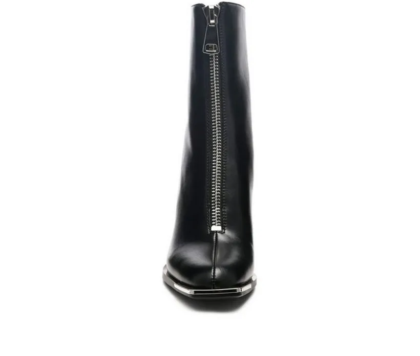 Square Toe Bootie crafted on square toe platform is a twist in the trend – the high heeled block boot has front metallic zipper opening. Stunning pair of high street boots for the fall!