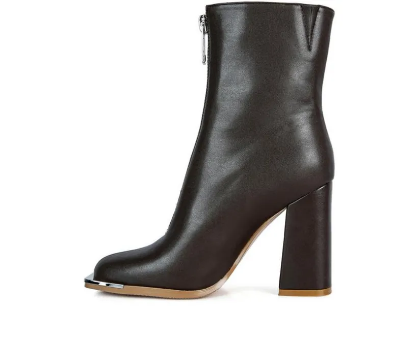 Square Toe Bootie crafted on square toe platform is a twist in the trend – the high heeled block boot has front metallic zipper opening. Stunning pair of high street boots for the fall!