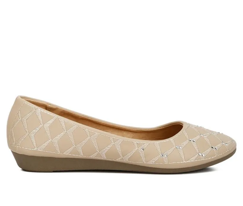 Whether you’re dressing up for a special occasion or looking for comfortable and stylish everyday footwear, these ballerinas are a perfect choice. Their combination of faux leather, cushioned insoles, and beautiful embellishments makes them a versatile addition to your shoe collection.