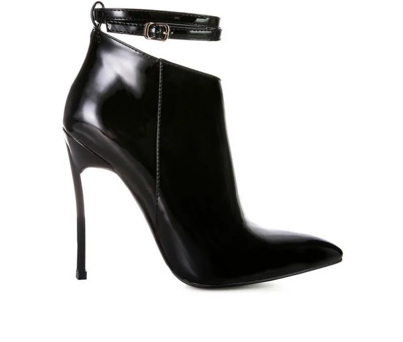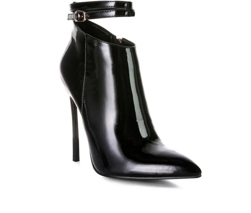 Style knows no bounds with these in your wardrobe. Drooling pointed high heeled booties in sharp pointed toes which shine in great finish and construction, these have a side zipper opening and come with a decorative pin buckle at the ankle. A perfect season transition style, for all occasions! Outer material: Polyurethane. Lining Material: Synthetic. Outer sole: TPR. Closed Pointed Toe. High Heel Sandals. Side Zipper Fastening. Pin Buckle Ankle Band. Party Wear Boots. SH3416.