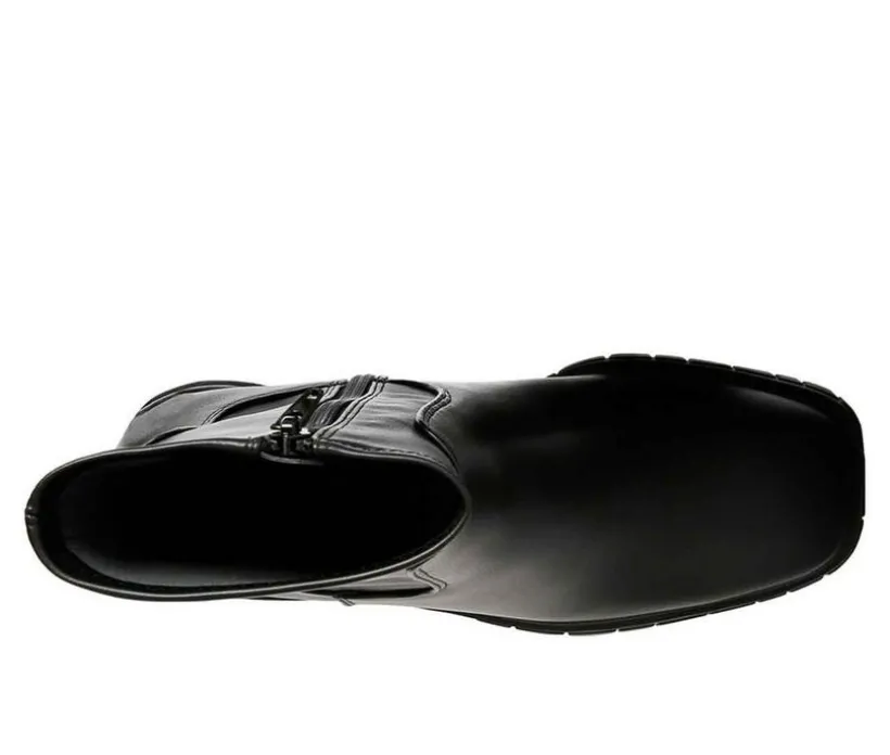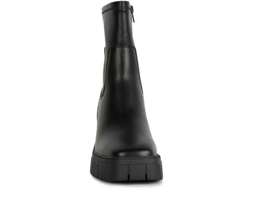 Made with super soft faux leather, this pair of ankle boots is plush in design and neat in construction. The high block heeled are supported on a lug sole platform which adds to the aesthetic and helps with height. It has a side zipper opening which makes it easy to wear.