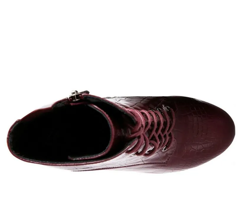 Croc Textured High Block Heeled Boot – the stylish pointed-toe boot looks gorgeous on the feet. The stylish biker ankle boot has raised platform with lace-up detail and comes with an easy-to-wear side zipper opening. Outer material: Croc PU. Lining Material: Synthetic. Outer sole: TPR. Closed Pointed Toe. Side Zipper Opening. Lace-Up Detail. Raised Platform. High-Heeled Ankle Boot. SH3289.
