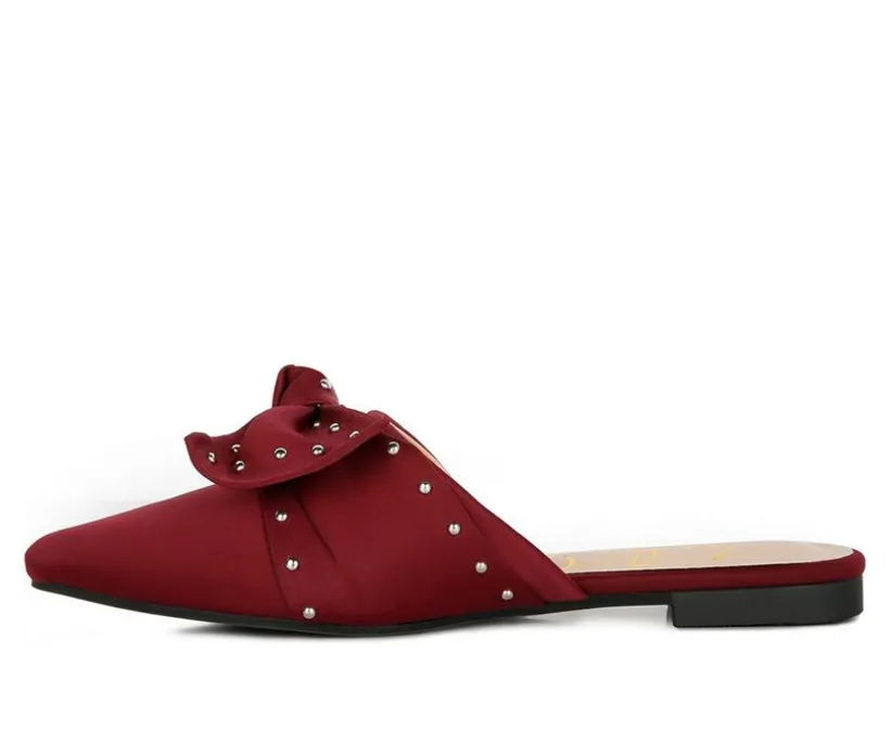 Studded Bow pointed toe mules are for all day wear and you can carry these with most of your casual outfits. Lightly cushioned and with construction that is super comfortable.