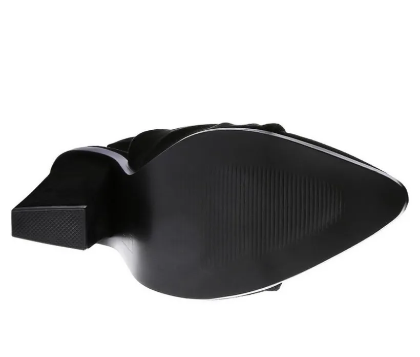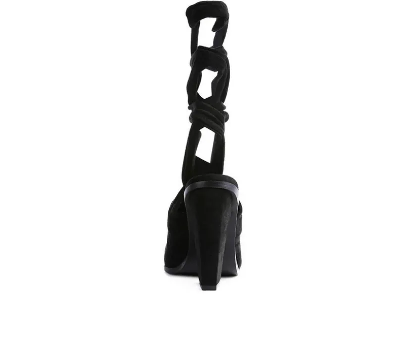 Statement high-heeled mule sandals – the gorgeous fine microfiber lace-up sandal is worth every dollar spent. It has a pointed toe which makes it sharp. The high block heel steals thunder! Outer material: Microfiber. Lining Material: Synthetic. Outer sole: TPR. Closed Pointed Toe. High Block Heel. Lightly cushioned Insole. Lace-up Detail. SH3161.