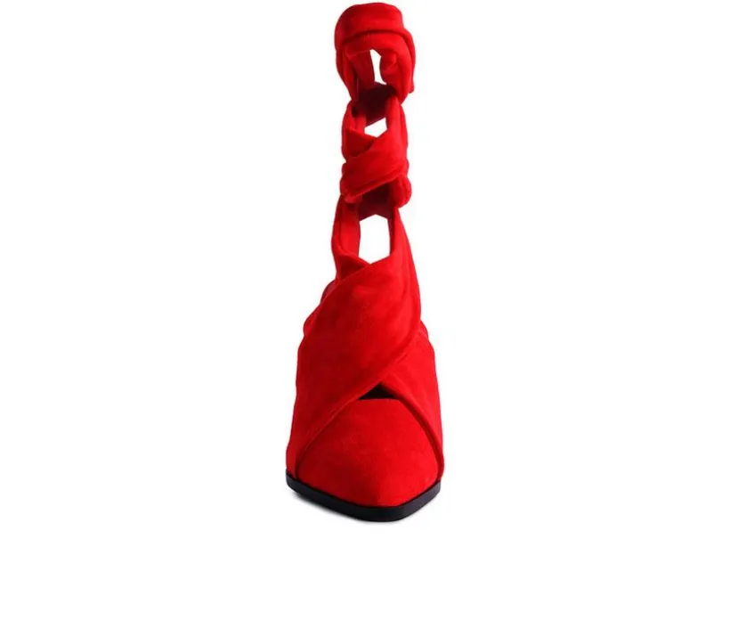 Statement high-heeled mule sandals – the gorgeous fine microfiber lace-up sandal is worth every dollar spent. It has a pointed toe which makes it sharp. The high block heel steals thunder! Outer material: Microfiber. Lining Material: Synthetic. Outer sole: TPR. Closed Pointed Toe. High Block Heel. Lightly cushioned Insole. Lace-up Detail. SH3161.