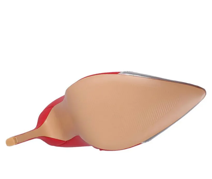 - Closed pointed metallic finsihed toe