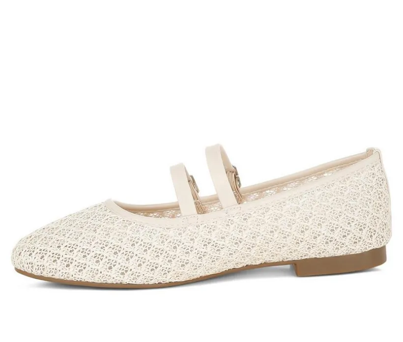 A modern spin on a timeless favorite. This structured flat features a woven or textured closed-toe design with a pointed silhouette and twin buckled straps across the top. Perfect for dressing up casual outfits with a refined, feminine edge.