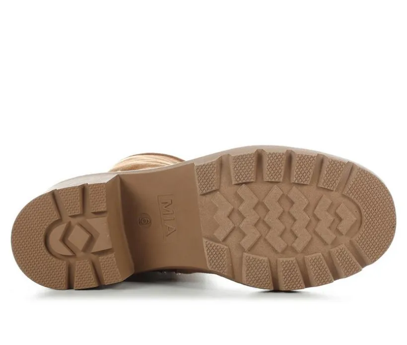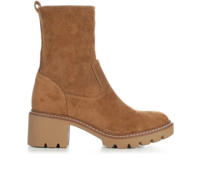 Ground your look in modern edge with the Women’s MIA Camryn Booties. Designed with a soft suede finish, this ankle-to-mid shaft boot sits on a chunky block heel with a rugged lug outsole for both style and traction. Contrast stitching along the midsole adds a crafted touch, while the pull tab at the back makes them easy to slip on and off. Perfect for pairing with denim or casual layers, these booties bring versatile style to every season.