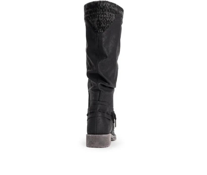 Hit the streets in LUKEES by MUK LUKS® Women’s Bianca Briana Boots. With sweet knit accents and rope detail, these knee-high boots will keep feet comfortable all day with memory foam insoles. Wipe with a damp cloth to clean, no bleach, lay flat to dry. Imported. Indoor/Outdoor Sole.100% Polyester Faux Fur Insole. 100% Polyurethane Upper. 100% Acrylic Knit. 100% Polyester Faux Fur Lining. 1.30” Block Heel. Water Resistant. Multiple color options available. Women’s Whole Sizes 6-11.