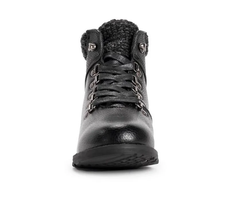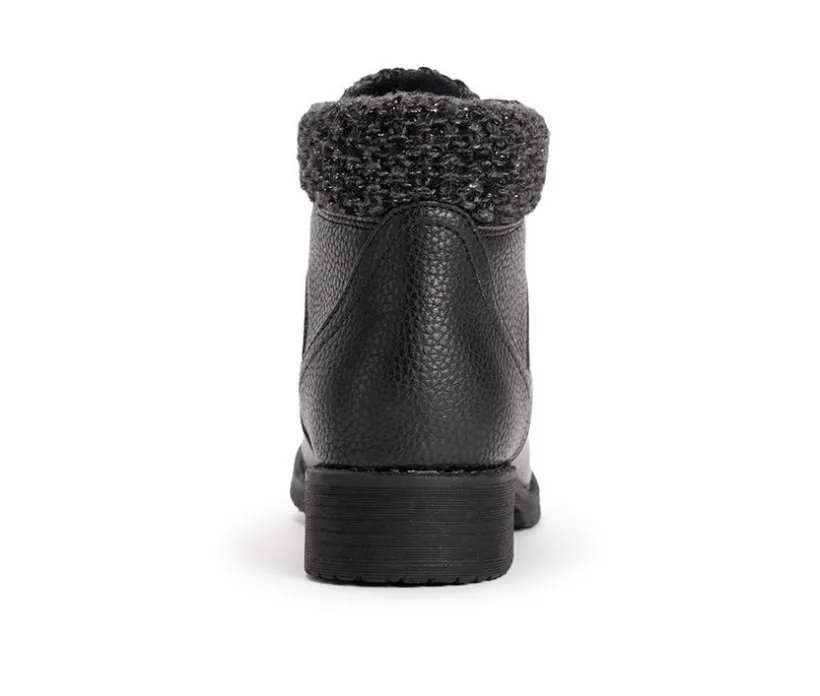 Put your best foot forward in LUKEES by MUK LUKS® Women’s Hiker Denali Boots. Knit textures combined with faux leather give this ankle bootie a classic vintage look while memory foam insoles and soft faux fur lining will keep your feet warm and comfortable all day long. Wipe with damp cloth. Do not bleach. Lay flat to dry. Imported. Zipper Closure. 100% Polyurethane Upper. 100% Acrylic Knit Collar. 100% Polyester Faux Fur Lining. Memory Foam Insole. Indoor/Outdoor TPR Sole. 1.35 Inch Heel. Multiple Color Options. Women’s Sizes 6-11.