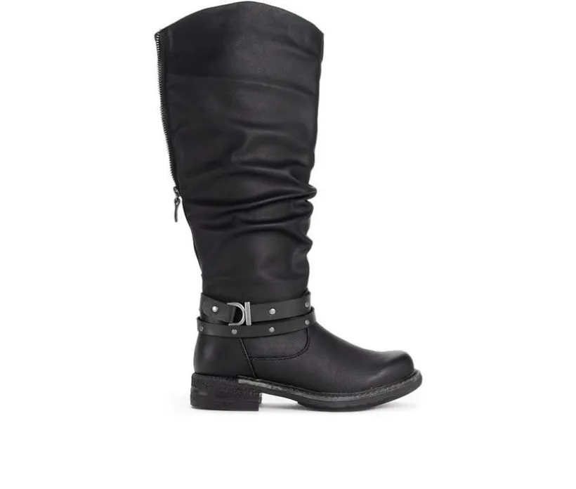 LUKEES by MUK LUKS® Women’s Logger Victoria Boots are the perfect fall weather stable. These tall water-resistant boots let you mix up your style with sweet knit accents and buckle detail. Wipe with a damp cloth to clean, no bleach, lay flat to dry. Imported. Durable TPR Sole. 100% Polyester Insole. 100% Polyurethane Upper. 100% Polyester Lining.Water Resistant. Memory Foam Insole. Multiple Color Options. Women’s Whole Sizes 6-11.