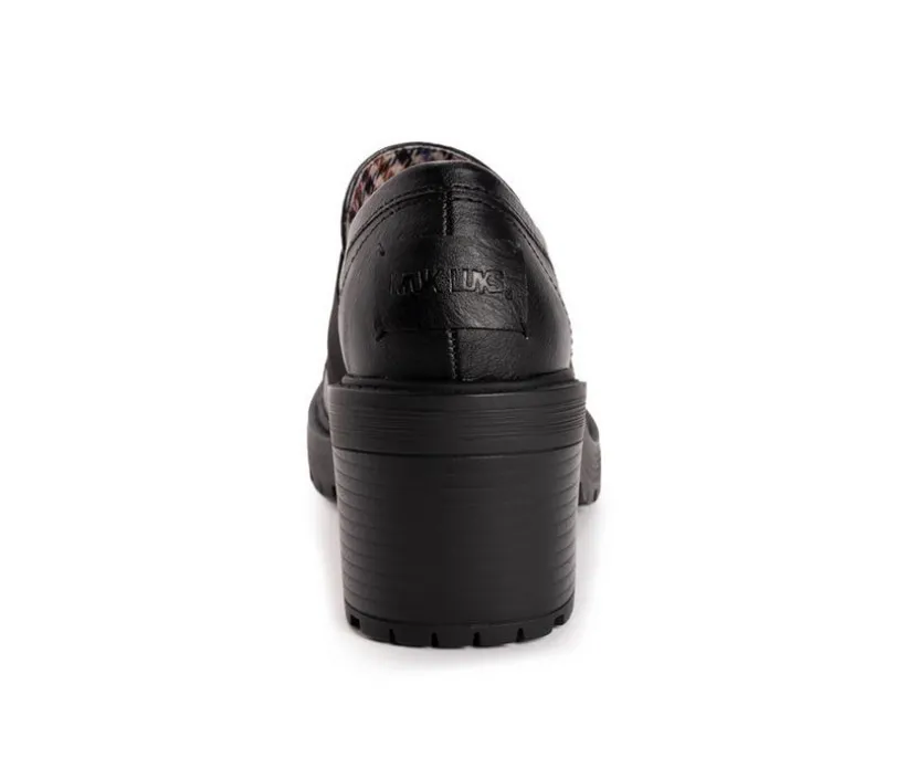 Elevate your style with the MUK LUKS Women’s Lucy Lettie Loafer. Featuring a round toe and a chic strap across the vamp, this boot combines a stunning silhouette with a comfy footbed for a perfect fit. The chunky platform and block heel add the perfect tough of height and flair. Perfect for any occasion, these boots effortlessly blend fashion and comfort. Step out in confidence and style all season long.