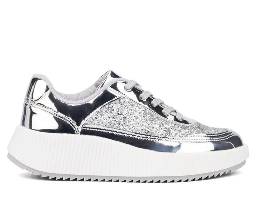Introducing the Tana sneaker, the ultimate statement piece your wardrobe has been waiting for. These dazzling sneakers feature a glitter finish that catches the light with every step, ensuring you stand out from the crowd. The platform sole not only adds a trendy touch but also provides extra height and a comfortable boost, making these sneakers as practical as they are stylish.