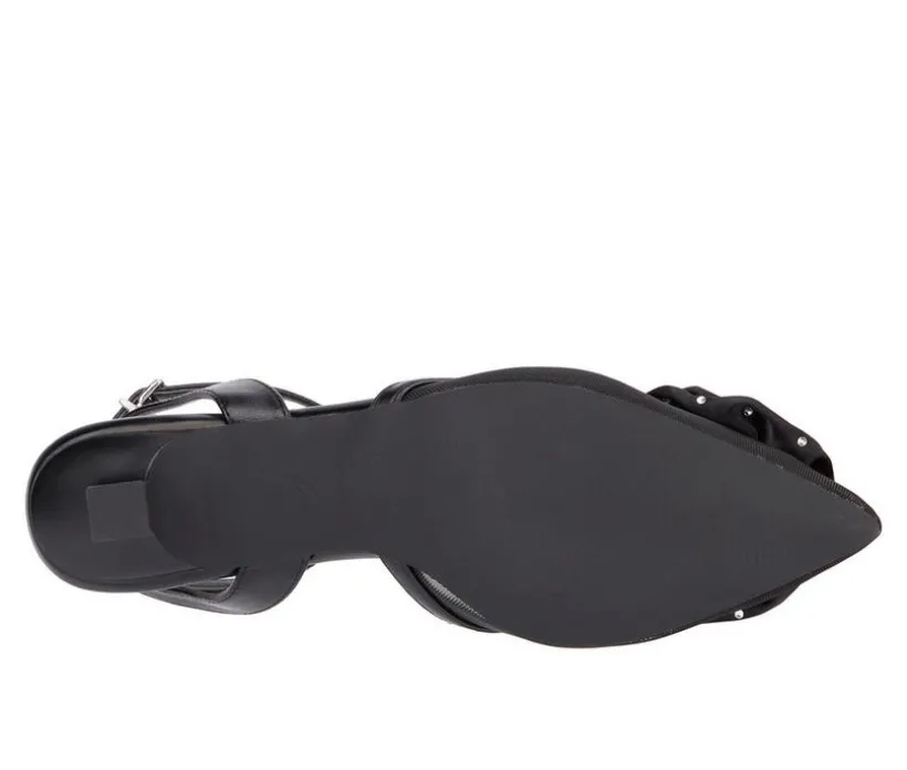 - Crisscross slingback ankle strap with adjustable buckle closure
