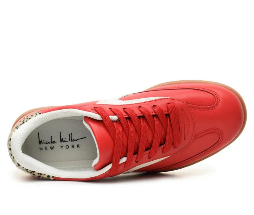 Turn up the color and step out in style with the Women’s Nicole Miller Breanne sneakers. Featuring a bold red upper with textured contrast panels and a pop of animal print at the heel, this street-smart sneaker is anything but basic. A cushioned footbed and gum rubber sole complete the look with all-day comfort and effortless cool.