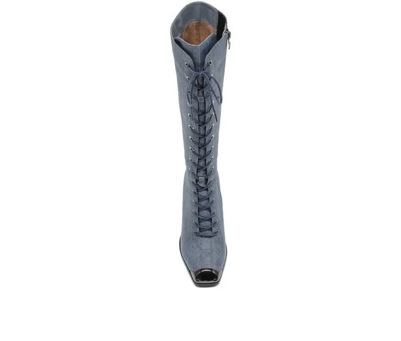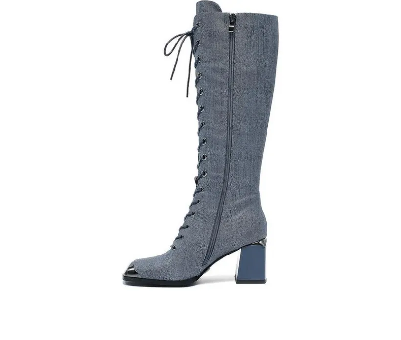 Stand out with these tall boots that combine classic height with bold laced-up styling. The man-made upper rises to just below the knee, detailed with a full lace-up front for striking appeal. A block heel adds a confident lift, while the square-shaped shaft and inside zipper make them easy to wear. A perfect statement piece to pair with dresses, skirts, or skinny jeans.