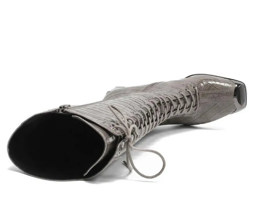 Stand out with these tall boots that combine classic height with bold laced-up styling. The man-made upper rises to just below the knee, detailed with a full lace-up front for striking appeal. A block heel adds a confident lift, while the square-shaped shaft and inside zipper make them easy to wear. A perfect statement piece to pair with dresses, skirts, or skinny jeans.