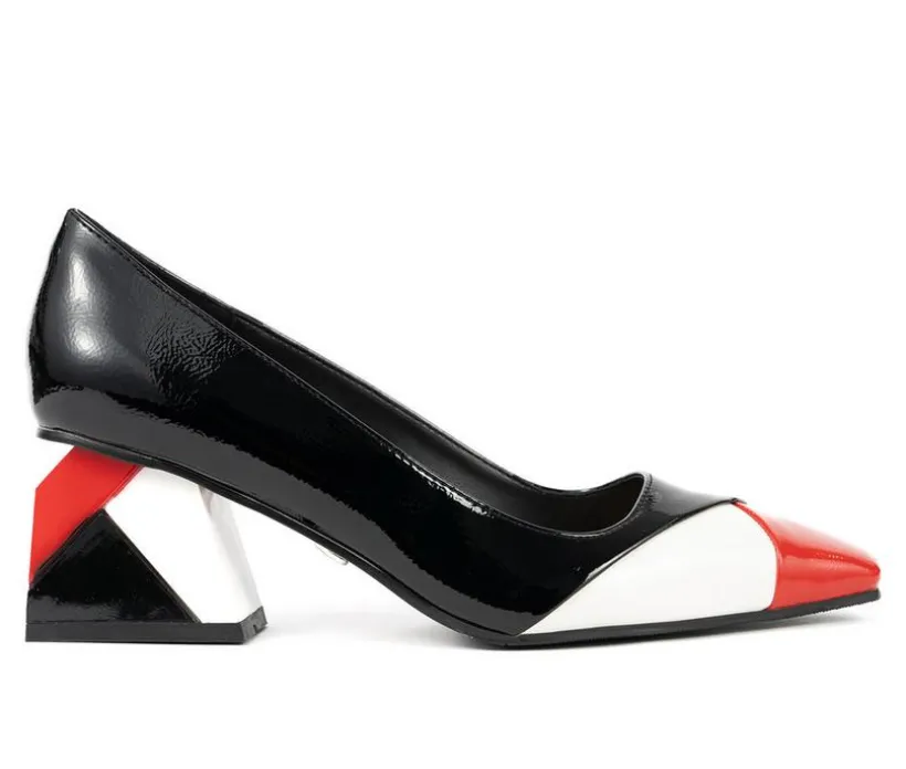 Crafted for standout style with everyday wearability, these modern slip-on heels blend crisp lines with a sculptural block heel that instantly elevates any look. The smooth upper pairs with a pointed toe to create a sharp, polished silhouette, while the geometric heel adds an artistic touch from every angle. A soft interior supports comfortable wear, making them an easy choice for workdays, nights out, or anytime you want a bold yet refined finish.