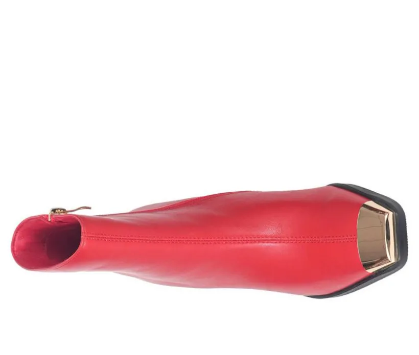 Bring bold style and standout design to your wardrobe with these chic ankle boots. Crafted with a sleek upper and a modern metallic-accented block heel, this pair makes a statement while staying comfortable for everyday wear. The inside zipper allows for quick on-and-off, while the structured silhouette and rounded toe create a polished finish. A cushioned footbed and durable outsole complete the look, giving you fashion and function in every step.
